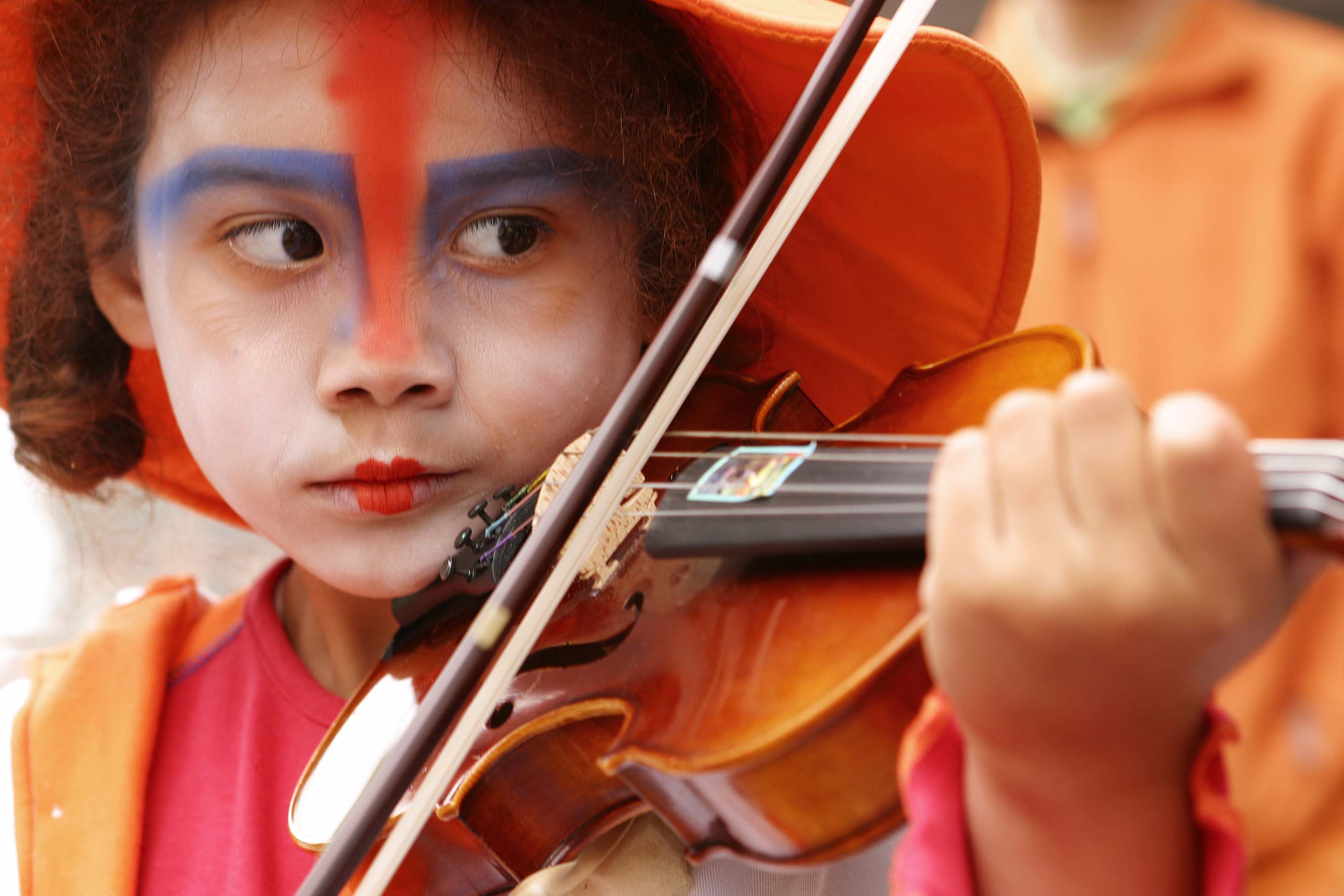 where playing their violin too, their bows connect to the girls bows.